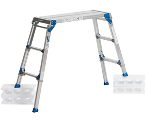 軽量でコンパクト収納できるスタンダードタイプの伸縮脚付足場台です。