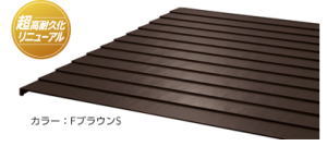えました。 FブラックS FブラウンS FグリーンS.などカラーバリエーションがあります。 超高耐候のフッ素樹脂遮熱鋼