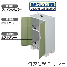 イナバ物置ののアイビーストッカーの外鉄板は高級ウレタン塗装ですので、錆に強く変色に強い |