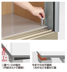 イナバ物置のナイソーシスターはアジャスト調節が簡単です。  イナバ物置のナイソーシスターの棚板は高さ調節も簡単です。