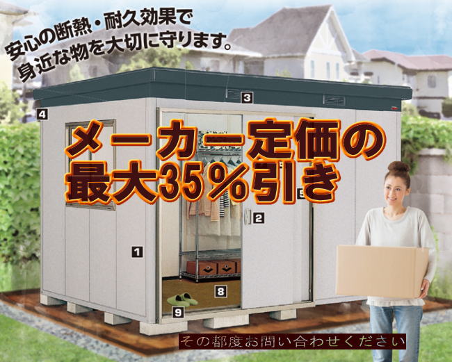 イナバ物置の単価について ほとんどメーカー定価の65%で販売しております。が中に例外あり