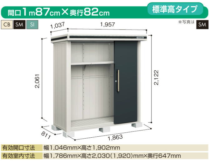ヨド物置エルモは前面に棚柱がなく取り付けや高さ調整が簡単です。